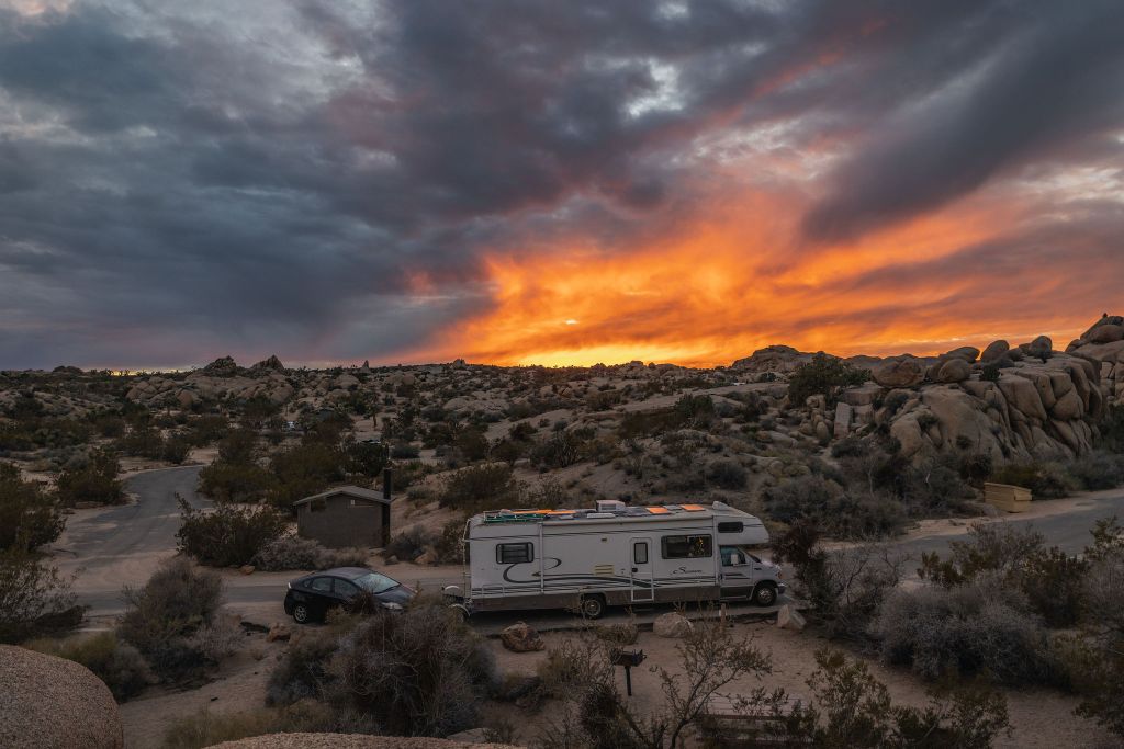 The trip so far has not been without it’s stress. Having left at the beginning of an intense heat wave we blew a tire twice driving through the desert. (Shoutout to Discount Tire in Hendersen, Nevada). Since we aren’t sure if or when we’re returning we have the contents of our entire storage locker in our rig which has not made for a comfortable ride. Bins stacked on the couch where our butts should be and our shower so full of guitars we can’t open the door. Because of all of this we are not doing what we usually do on our trips and stopping to adventure. Just driving as long as we can handle each day. Just trying to get there.